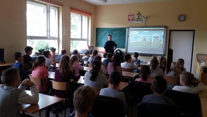 W dniu 25.09. gościliśmy w naszej szkole Pana asp. sztab. Z. Przybek z Wydziału d.s. Nieletnich Komendy Powiatowej w Wadowicach. Pan Policjant przeprowadził prelekcje w klasach IV-VII.