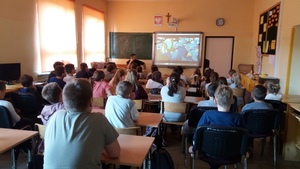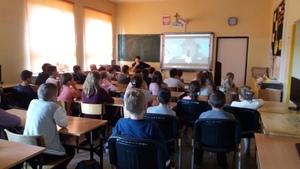 Młodsi uczniowie (klasa IV i V) zapoznani zostali z problemem niebezpieczeństwa jakie może nieść ze sobą Internet. Na podstawie ciekawych a zarazem humorystycznych bajek dzieci dowiedziały się o zagrożeniach czyhających w sieci, m.in. czym grozi ujawnianie swoich danych, umieszczanie swoich zdjęć i filmików na portalach społecznościowych czy prześladowanie ze strony innych użytkowników Internetu.