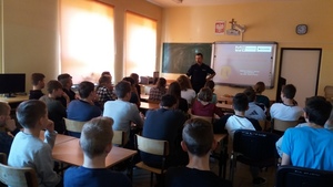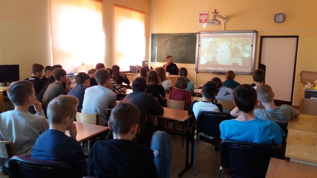 Starsi uczniowie (klasa VI i VII) również zyskali wiedzę na temat niebezpiecznych zachowań w Internecie. Ponadto otrzymali, od Pana prowadzącego zajęcia, wiedzę na temat odpowiedzialności prawnej nieletnich a także zjawiska przemocy wśród dzieci i młodzieży, jej rodzajów i przejawów oraz możliwych konsekwencjach w wyniku stosowania wobec innych przemocy.