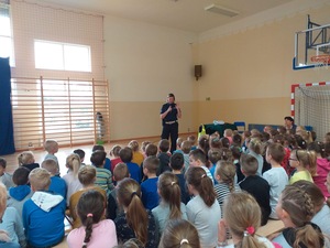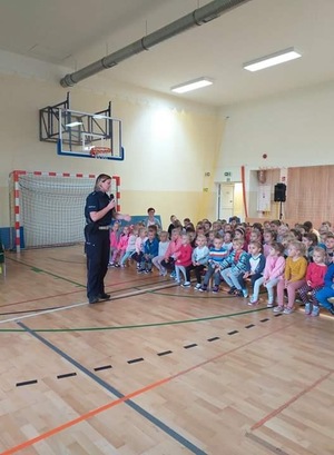 04.10.2019 w naszej szkole odbyło się spotkania z przedstawicielką KPP w Wadowicach panią Katarzyną Herma. W spotkaniu uczestniczyły dzieci z oddziałów przedszkolnych oraz uczniowie kl. I - VIII. Pani policjantka mówiła o zachowaniu bezpieczeństwa w drodze do szkoły , omówiła zasady bezpiecznego uczestnictwa w ruchu drogowym oraz jak należy poruszać się po chodniku, prawidłowo przechodzić przez jezdnię oraz jak prawidłowo podróżować samochodem. Uczniowie aktywnie uczestniczyli w spotkaniu, zadawali dużo pytań oraz dzielili doświadczeniami. Spotkanie przyczyniło się do wzrostu świadomości zachowań ryzykownych oraz bezpiecznych wśród dzieci i młodzieży.