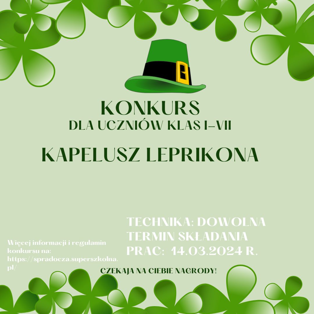 Konkurs polega na wykonaniu przestrzennej pracy plastycznej- kapelusza irlandzkiego skrzata;
